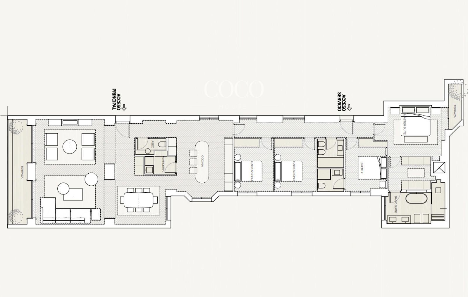 Flat for sale in Madrid, with 256 m2, 4 rooms and 5 bathrooms, Lift and Air conditioning.