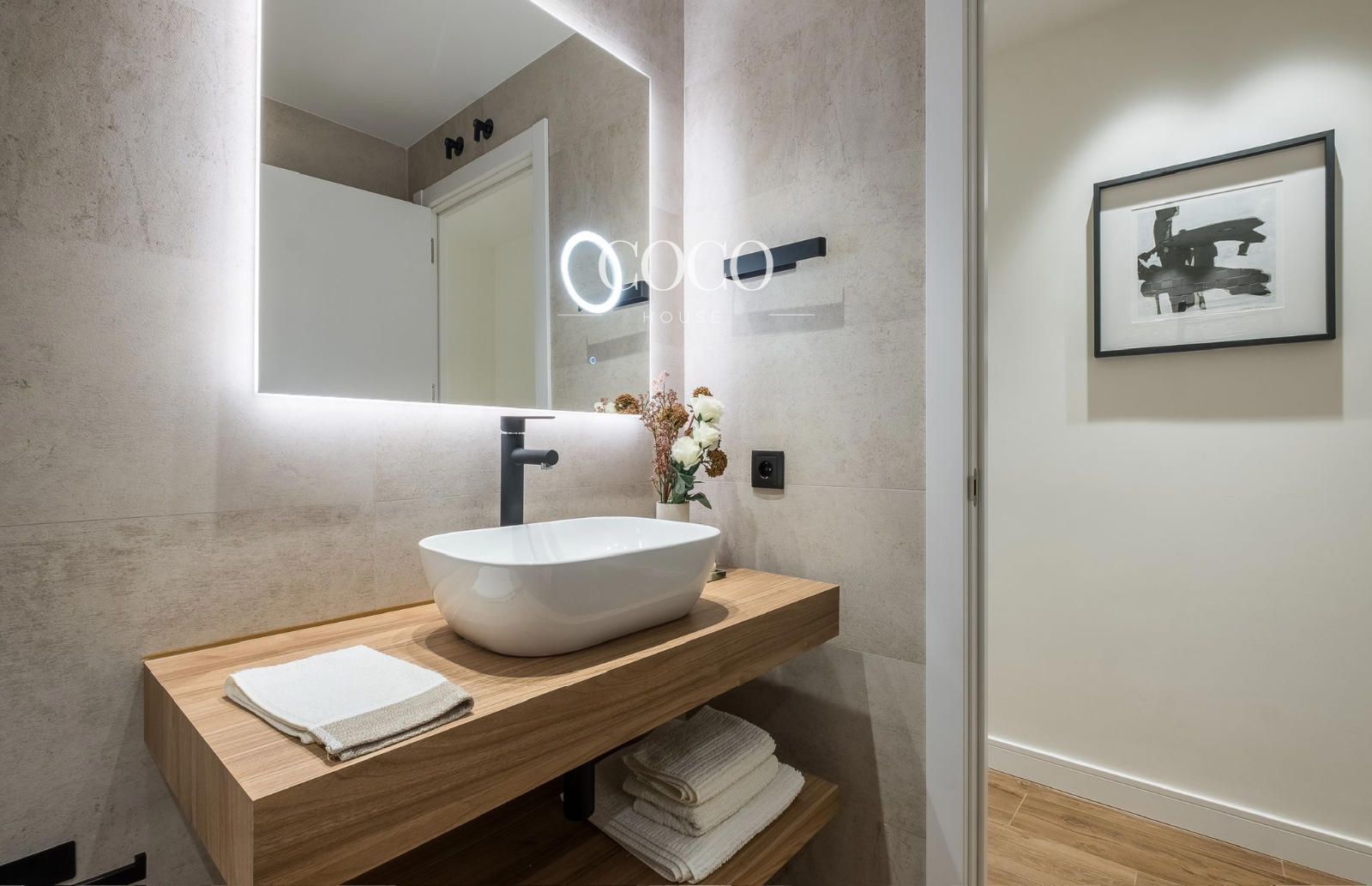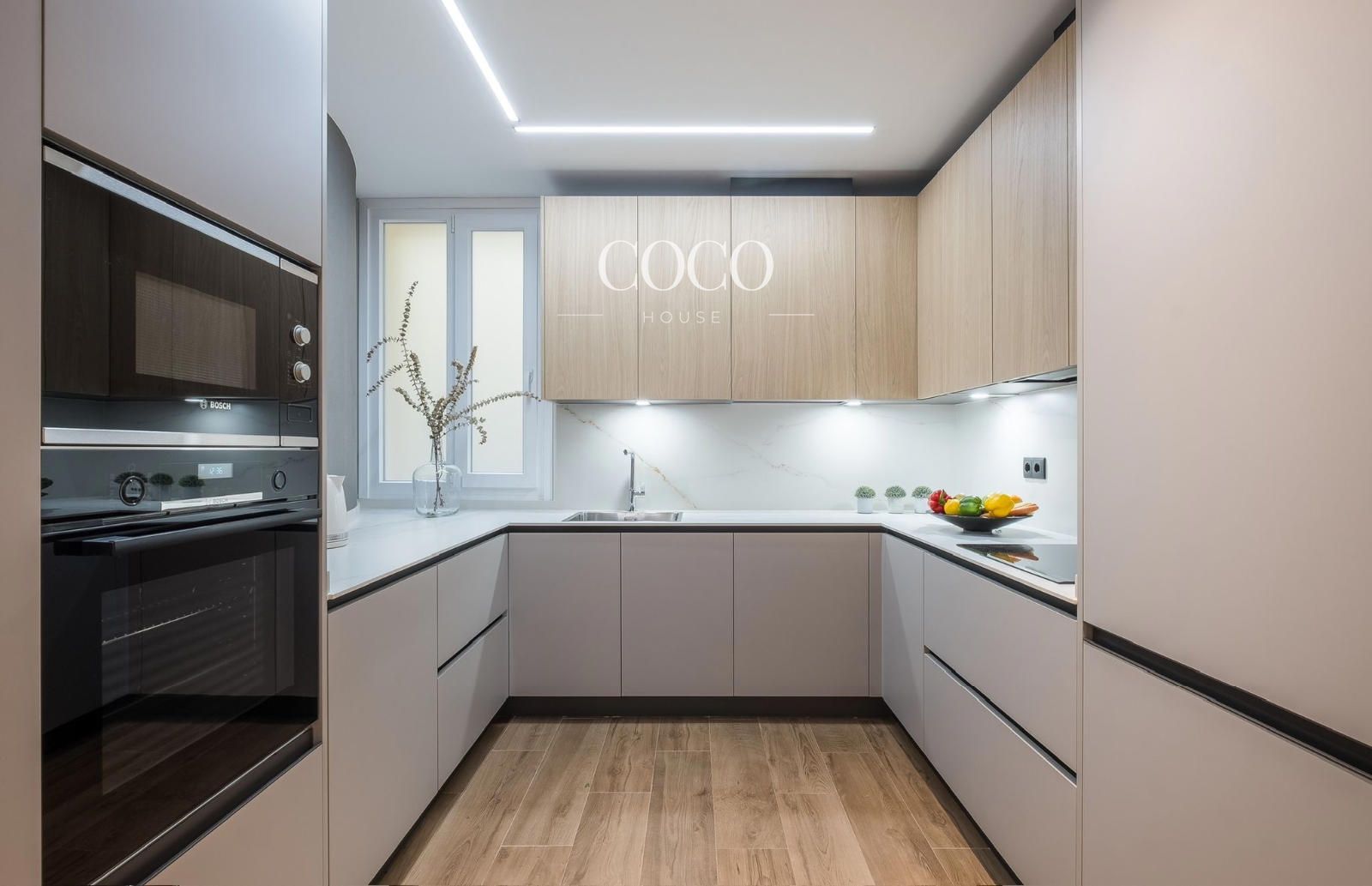 La vivienda se compone de un amplio salón-comedor con tres grandes ventanales a la calle, dos de ellos balcones, que ofrecen agradables vistas despejadas y una excelente luminosidad natural. Una amplia cristalera interior en el pasillo refuerza la entrada de luz, creando un ambiente acogedor y sereno.