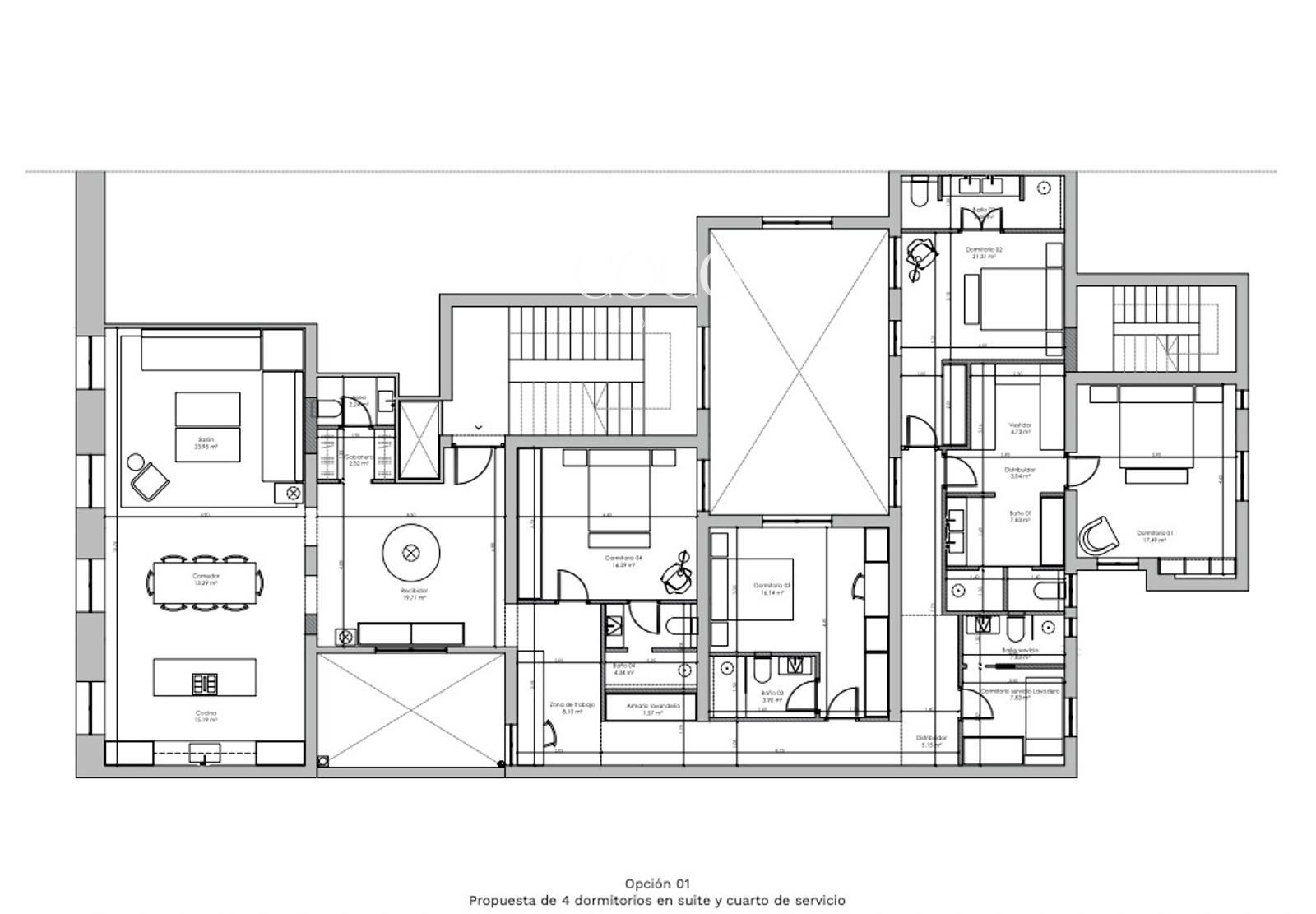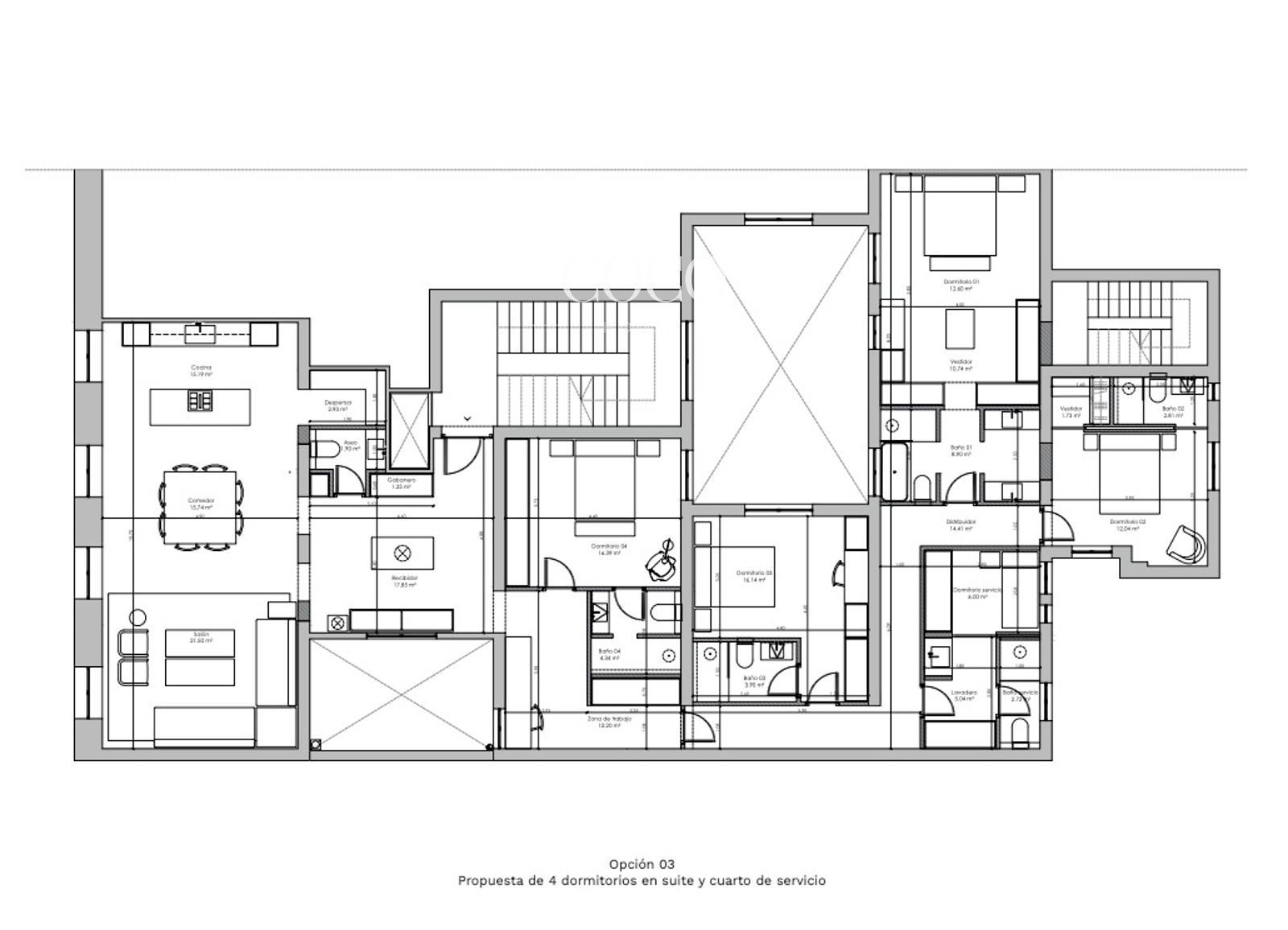 4 dormitorios en suite + dormitorio de servicio + lavandería