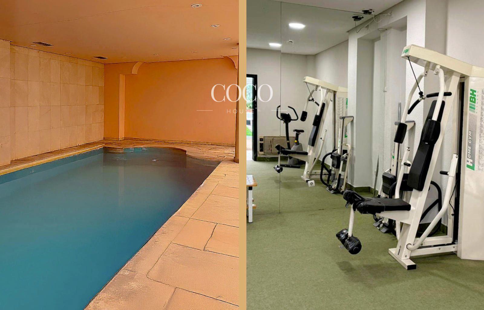 El inmueble dispone de garaje privado, aire acondicionado, calefacción individual y ascensor, asegurando comodidad en el día a día. Entre sus excelentes instalaciones destacan una piscina, zonas ajardinadas, gimnasio y sauna, ofreciendo un estilo de vida completo sin salir de casa.