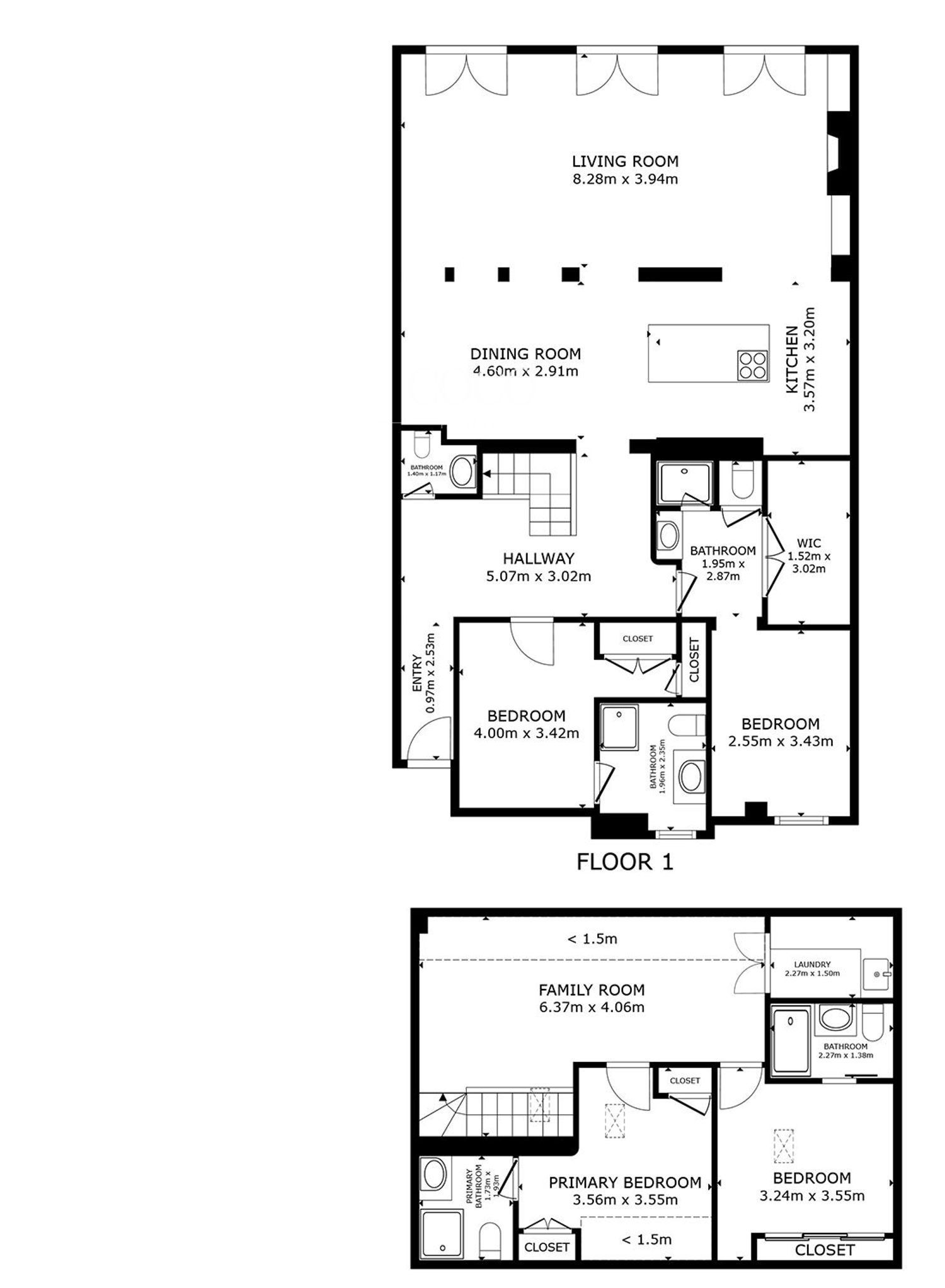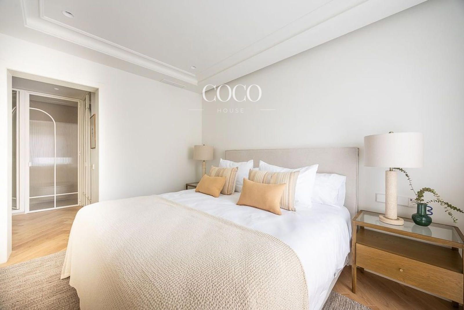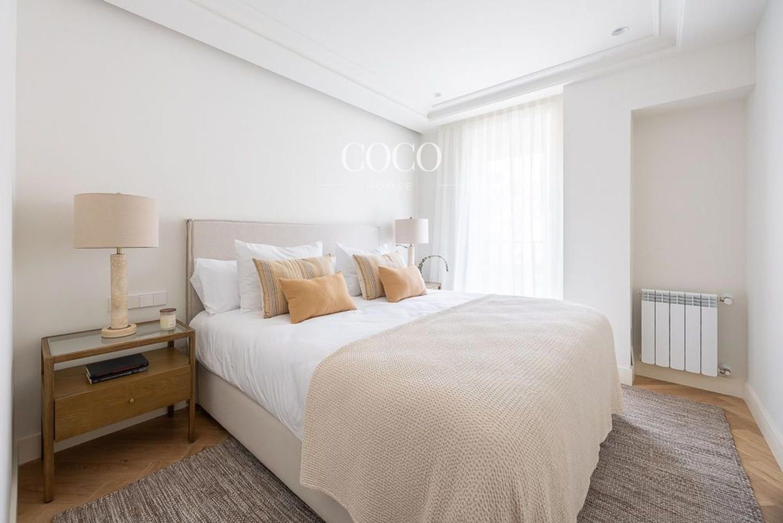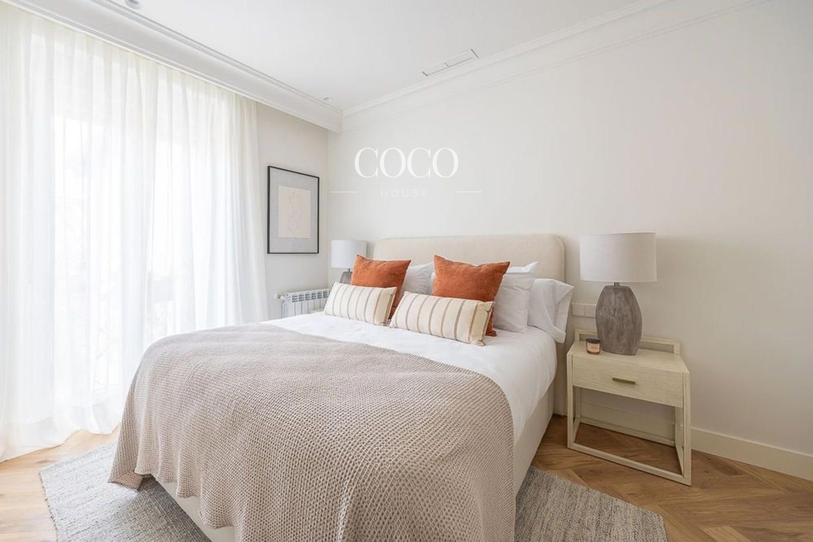 La vivienda cuenta con 200 m² distribuidos en dos plantas. En la principal, el hall conduce a una elegante escalera central y a la zona social, compuesta por un amplio salón con chimenea, librería a medida y tres balcones con vistas a la calle Goya y la Basílica de la Concepción. El comedor se integra con una cocina de diseño, equipada con isla central, electrodomésticos panelados y gran capacidad de almacenaje. Esta planta incluye además un aseo de cortesía, el dormitorio principal con vestidor y baño en suite, y un segundo dormitorio doble también con baño privado.