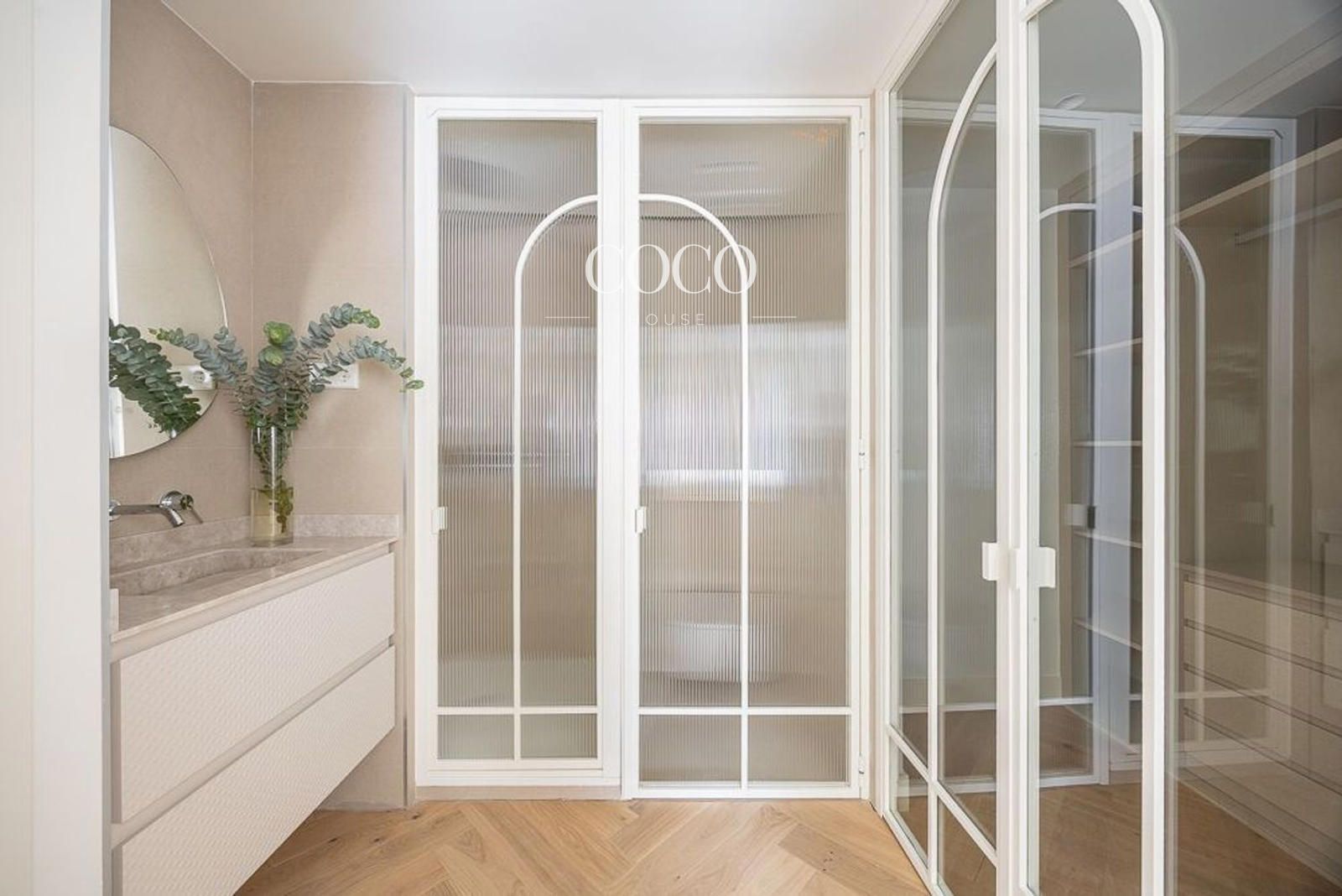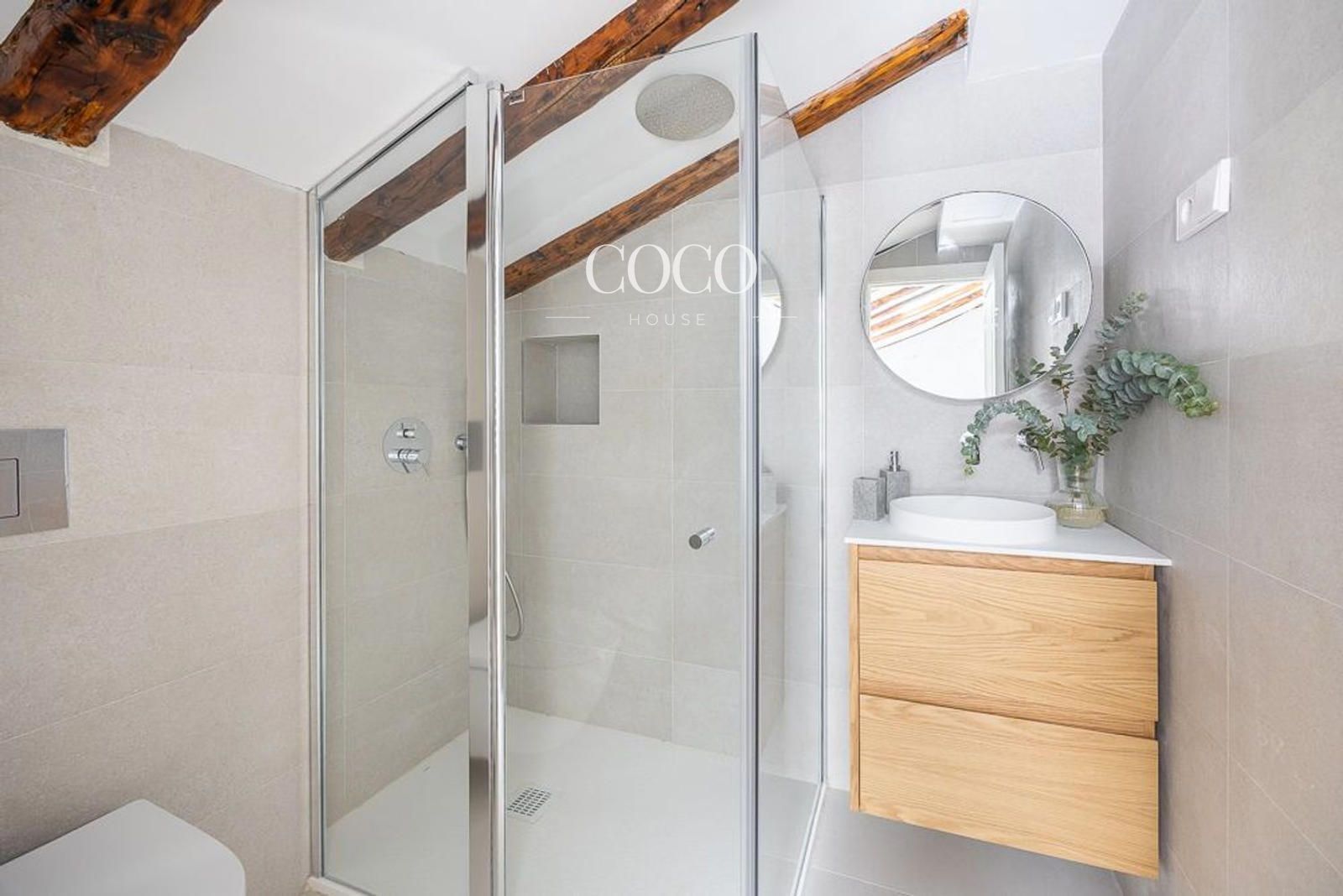 Con orientación sur, el ático está equipado con aire acondicionado por conductos, calefacción individual de gas natural, suelos de madera y ventanas aislantes. La reforma combina detalles originales —como molduras, muros anchos y radiadores de hierro forjado— con un diseño contemporáneo que potencia su carácter único.