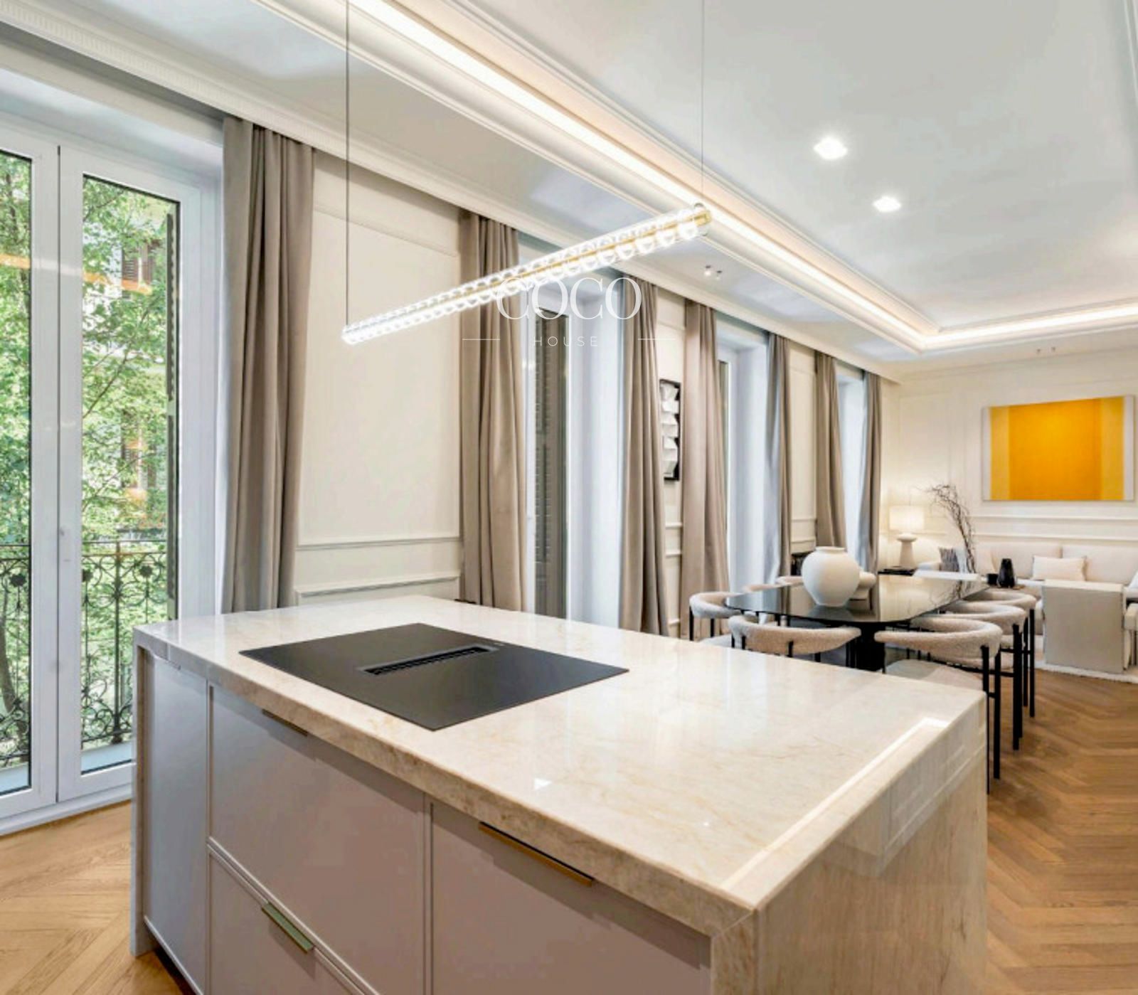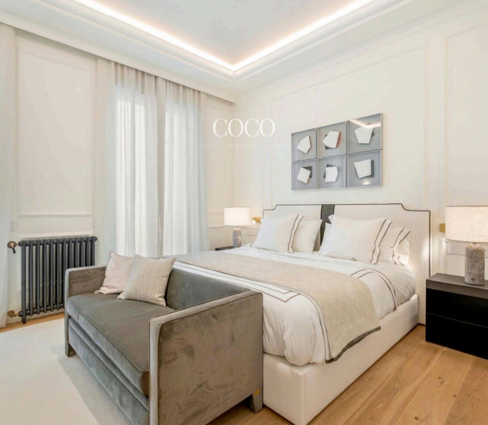 Ubicada en una elegante finca clásica completamente rehabilitada, esta exclusiva vivienda ofrece una experiencia residencial única en pleno corazón de Madrid. A pocos pasos de la calle Serrano y de la Plaza de la Independencia, combina el encanto arquitectónico original con un interiorismo contemporáneo y sofisticado. Sus techos de 3,20 metros de altura potencian la amplitud y la luminosidad de cada estancia. El edificio alberga una sola vivienda por planta, lo que garantiza la máxima privacidad y tranquilidad.