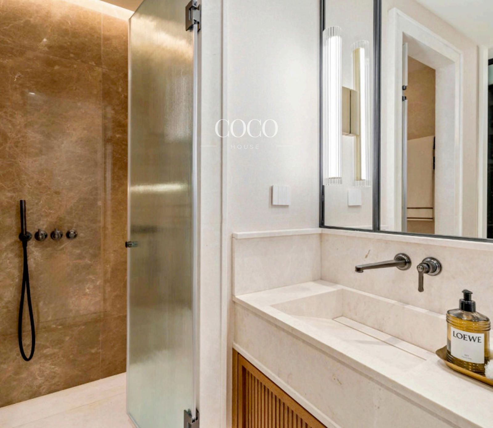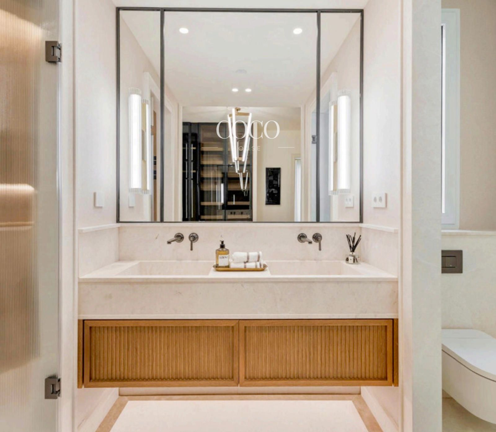 La propiedad ha sido reformada íntegramente con materiales de primera calidad y se entrega completamente amueblada, lista para entrar a vivir. Dispone de cuatro dormitorios en suite, todos con ventanales de suelo a techo que inundan las estancias de luz natural y crean una atmósfera serena. Se suma un aseo de cortesía para invitados, cuatro balcones con vistas a la calle y un amplio trastero. El servicio de portería añade un plus de comodidad y seguridad.