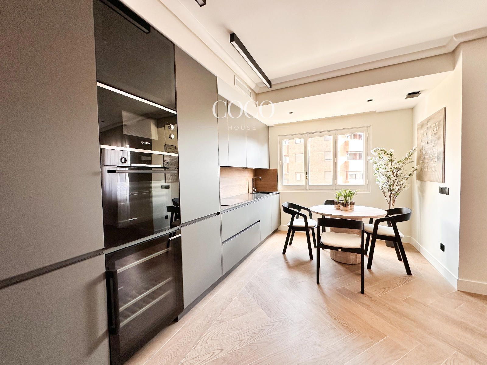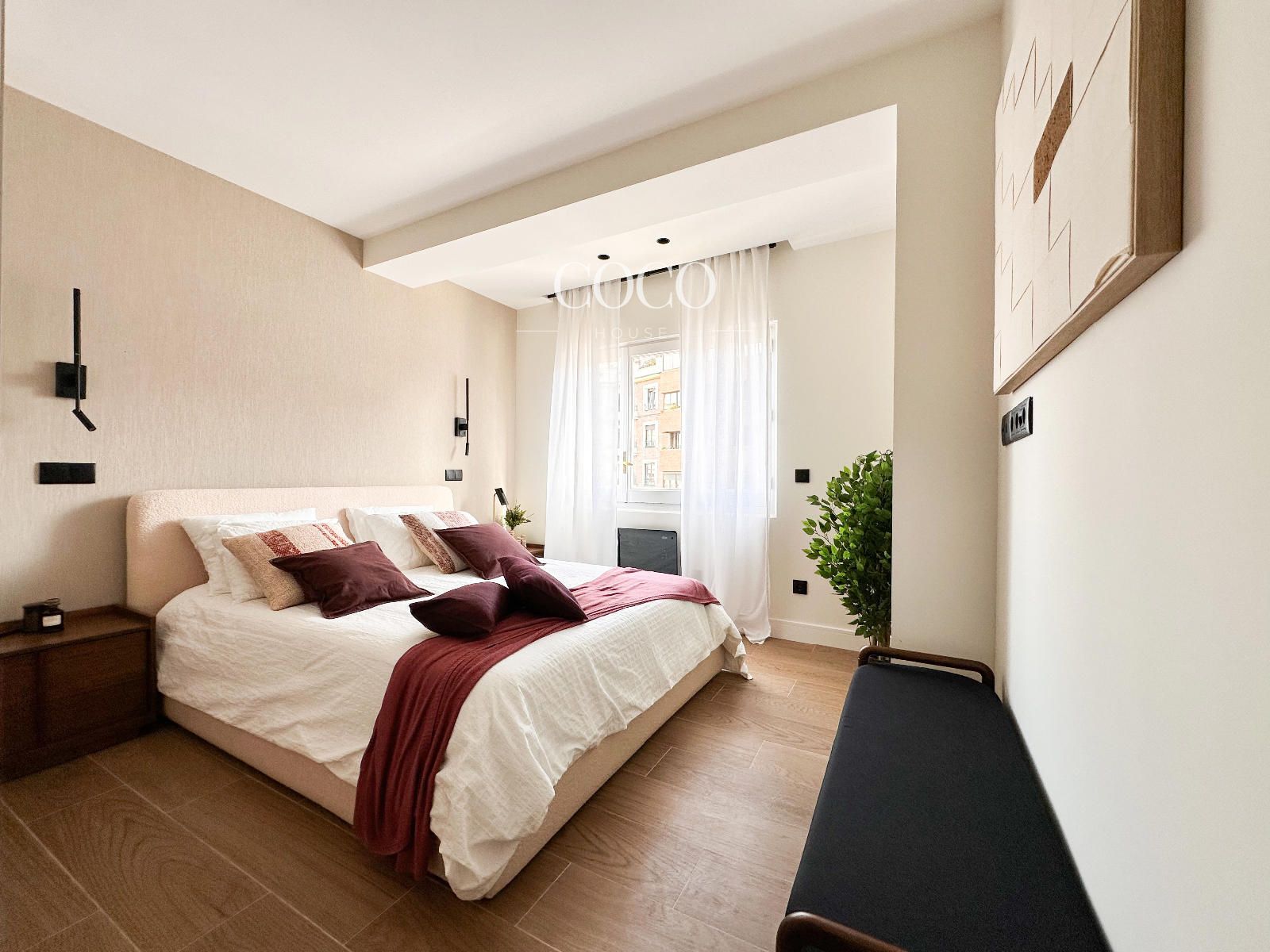 Piso exterior en cuarta planta en el Barrio de Salamanca, zona Goya, con cien metros construidos y una reforma reciente que realza cada estancia. Cuenta con dos habitaciones, dos baños completos y una amplia terraza orientada al este que aporta una luz excepcional durante todo el día. La finca, de 1955 y con ascensor, se sitúa en una de las zonas más demandadas de Madrid, rodeada de servicios, comercios y excelentes conexiones. Una vivienda lista para disfrutar en un enclave privilegiado.