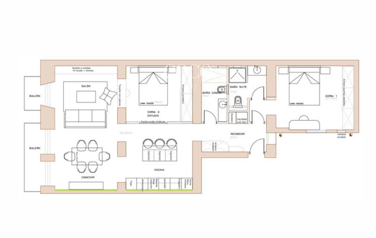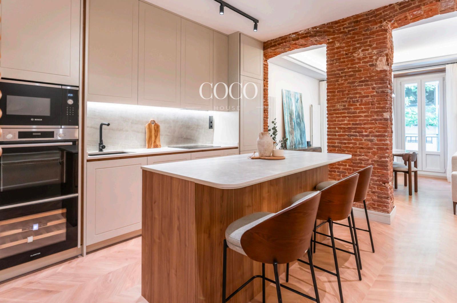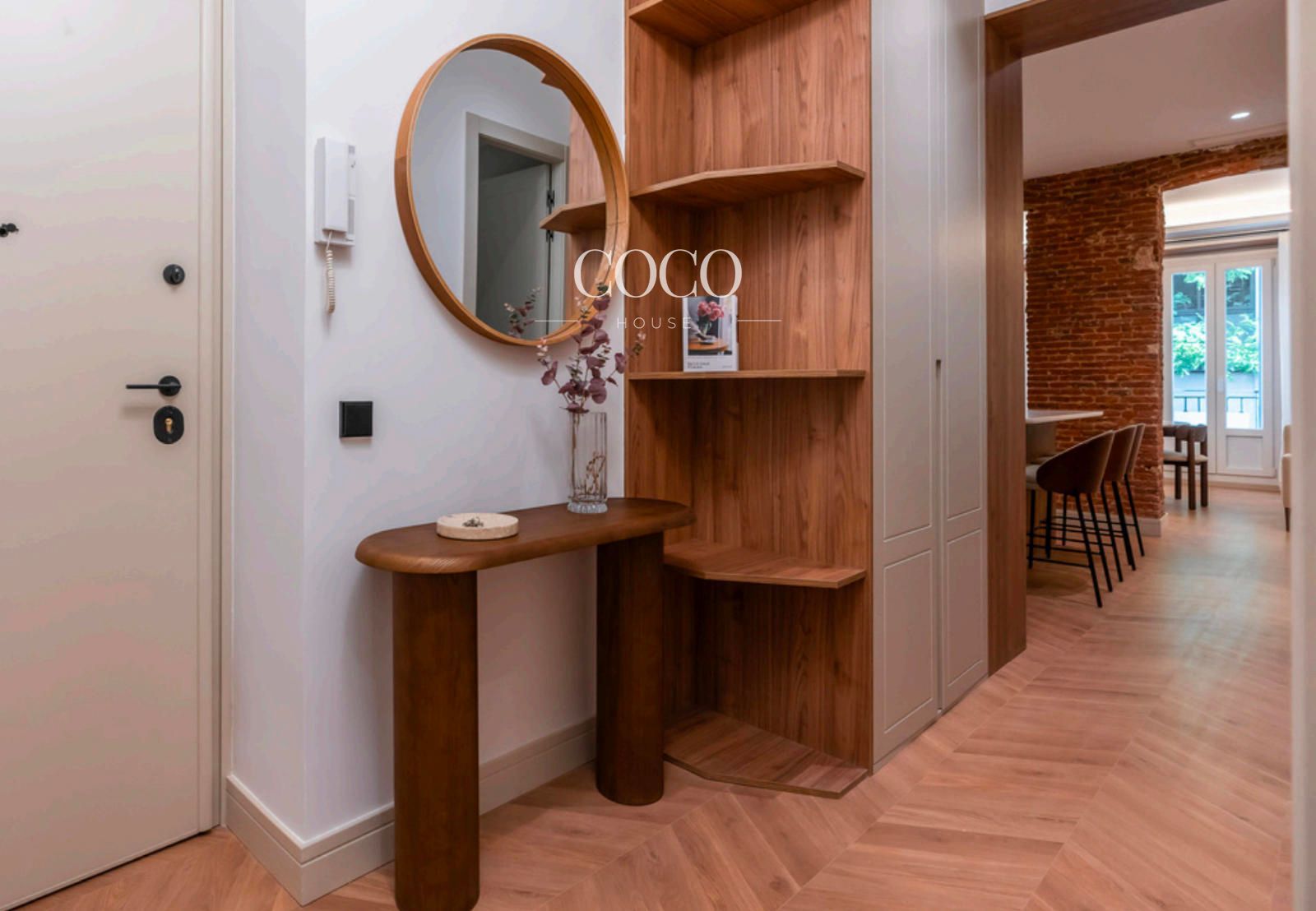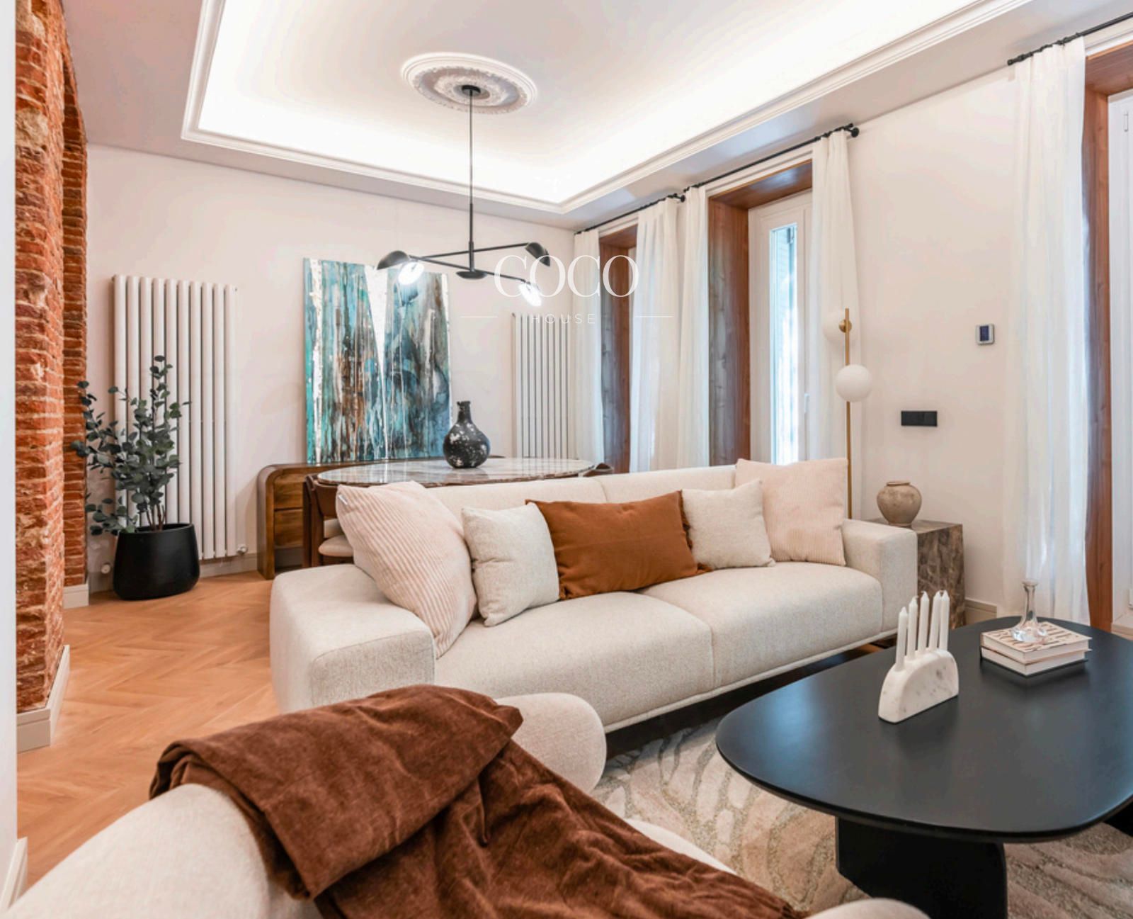 Ubicado en un elegante edificio señorial con ascensor y portero, este piso de 105m2 de primera planta destaca por su encanto exterior: dos balcones y un mirador con vistas a la calle. La reforma proyecta da ofrece dos dormitorios y dos baños completos, con una suite principal de diseño y baño privado. La cocina americana con isla, abierta al salón, refuerza la idea de un espacio contemporáneo pensado para disfrutar. Un inmueble que combina el carácter de lo clásico con el confort del lujo actual.