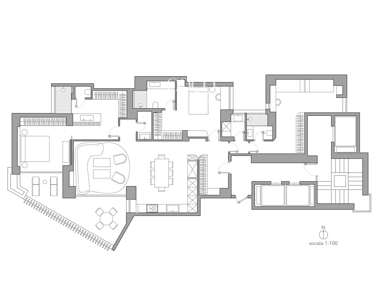 La vivienda ofrece una distribución amplia y funcional con tres dormitorios, tres baños completos y un aseo de cortesía. Los espacios han sido cuidadosamente renovados con materiales de alta calidad, combinando elegancia contemporánea y confort. El salón, amplio y exterior, se convierte en el gran protagonista gracias a su altura y sus vistas panorámicas.