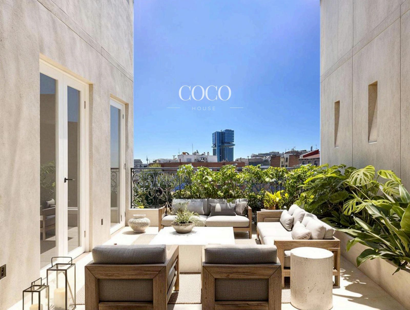 Situada en la quinta planta exterior de un edificio clásico rehabilitado con servicios de alto nivel, dispone de dos amplios dormitorios, dos baños completos y una luminosa zona de día que se abre a una terraza privada ideal para disfrutar al aire libre.