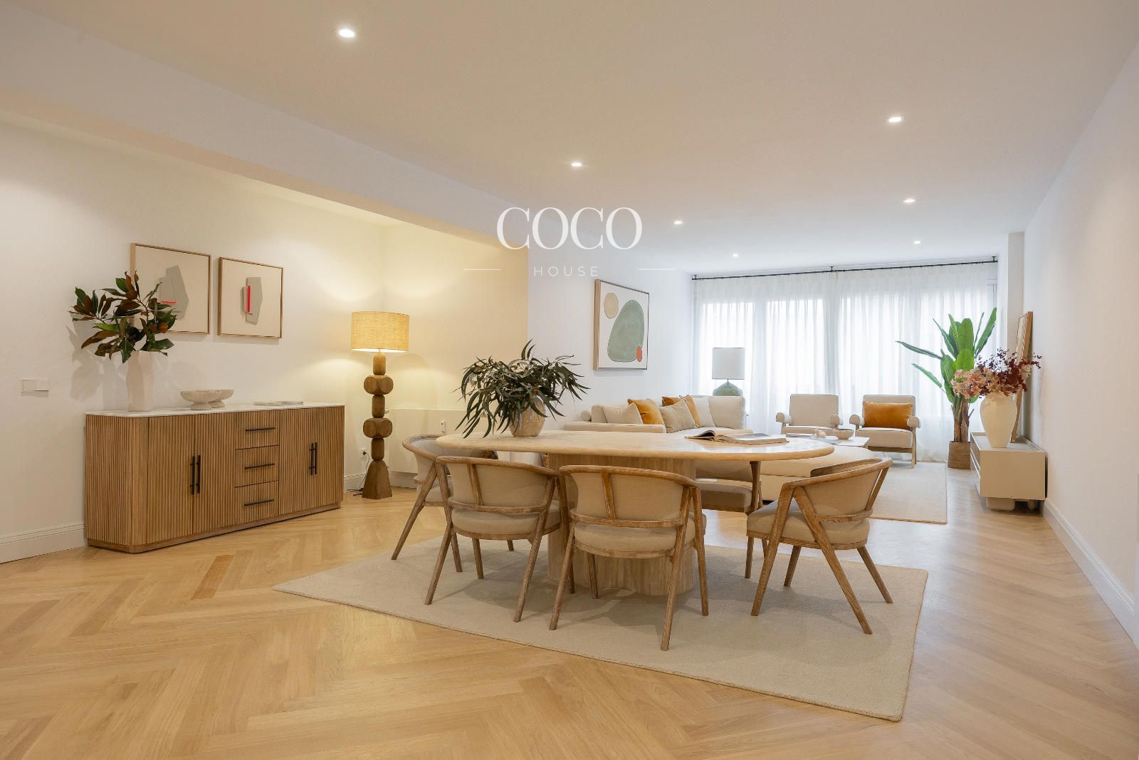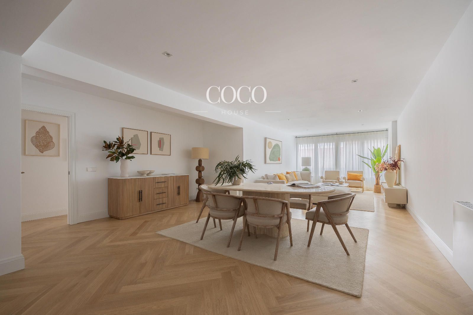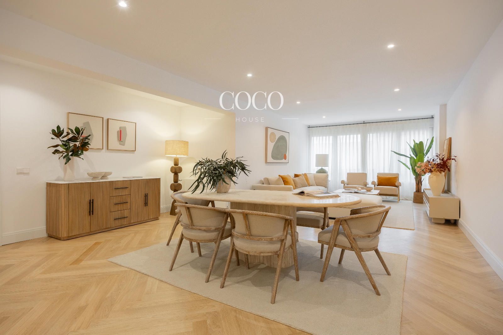 Situado en la cuarta planta de un edificio de 1972, esta vivienda de 200 metros cuadrados construidos ofrece un ambiente moderno y acogedor. Al entrar, te recibe un gran salón-comedor con orientación sur, ideal para disfrutar de la luz natural durante todo el día. La decoración y el mobiliario han sido cuidadosamente seleccionados para crear un espacio elegante y funcional.