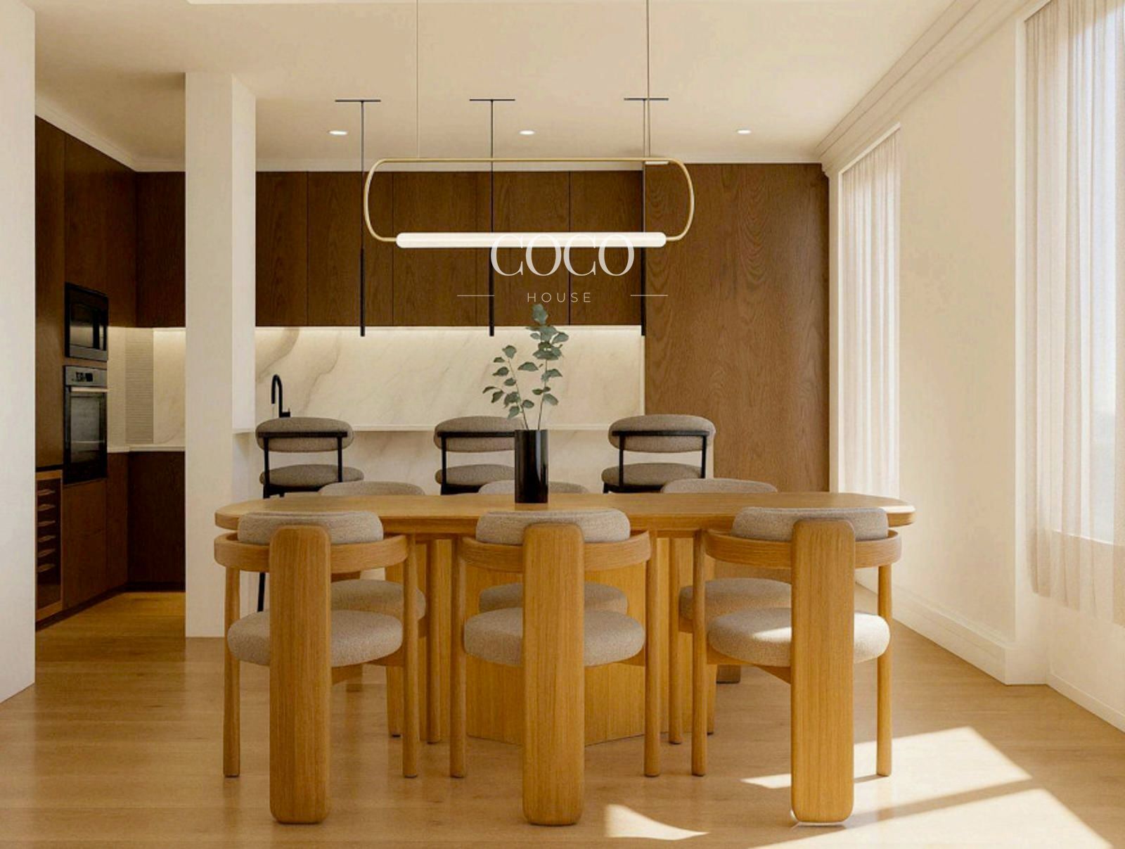 Con 154 m² construidos (138 m² útiles) y orientación sur, la vivienda disfruta de abundante luz natural durante todo el día. Su distribución actual ofrece espacios amplios y fluidos, con una clara separación entre las zonas social y privada. Destaca la cocina abierta con isla, integrada en un ambiente luminoso y acogedor junto al comedor y el salón.