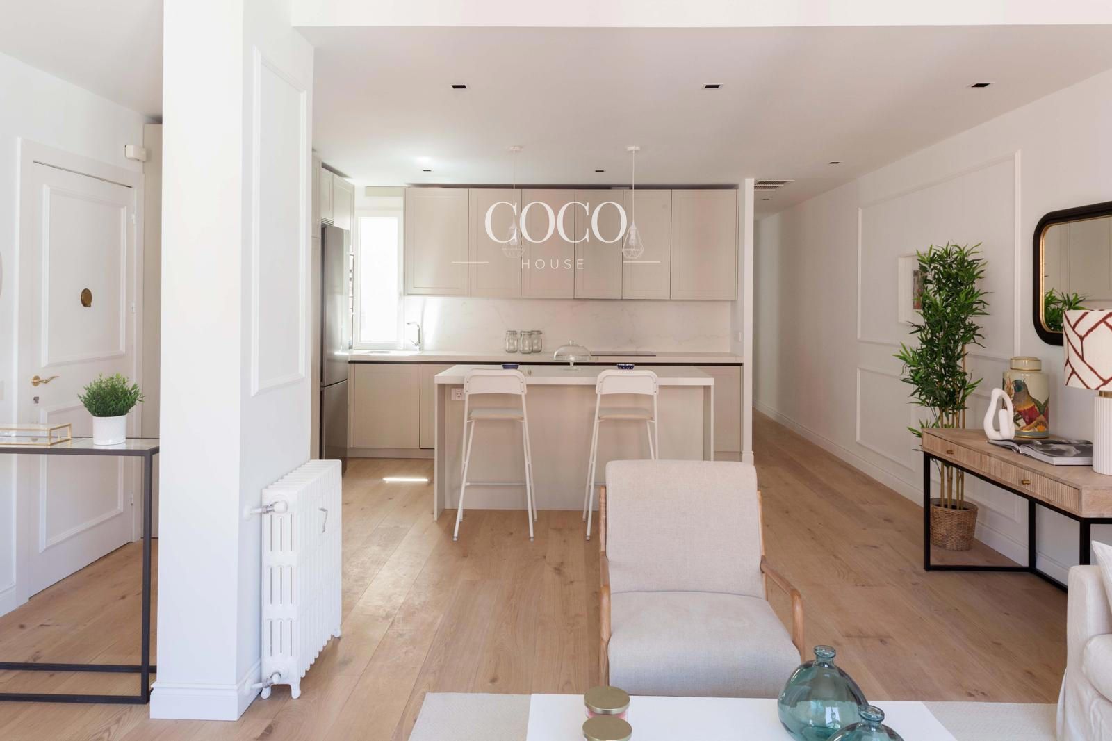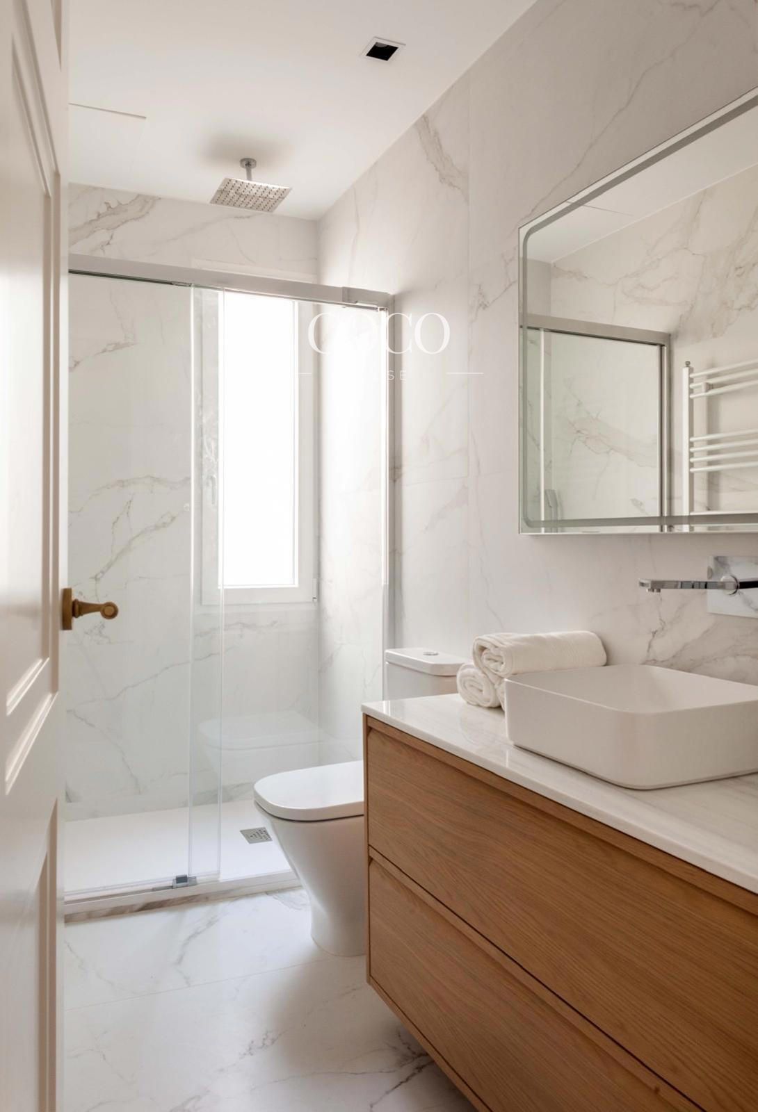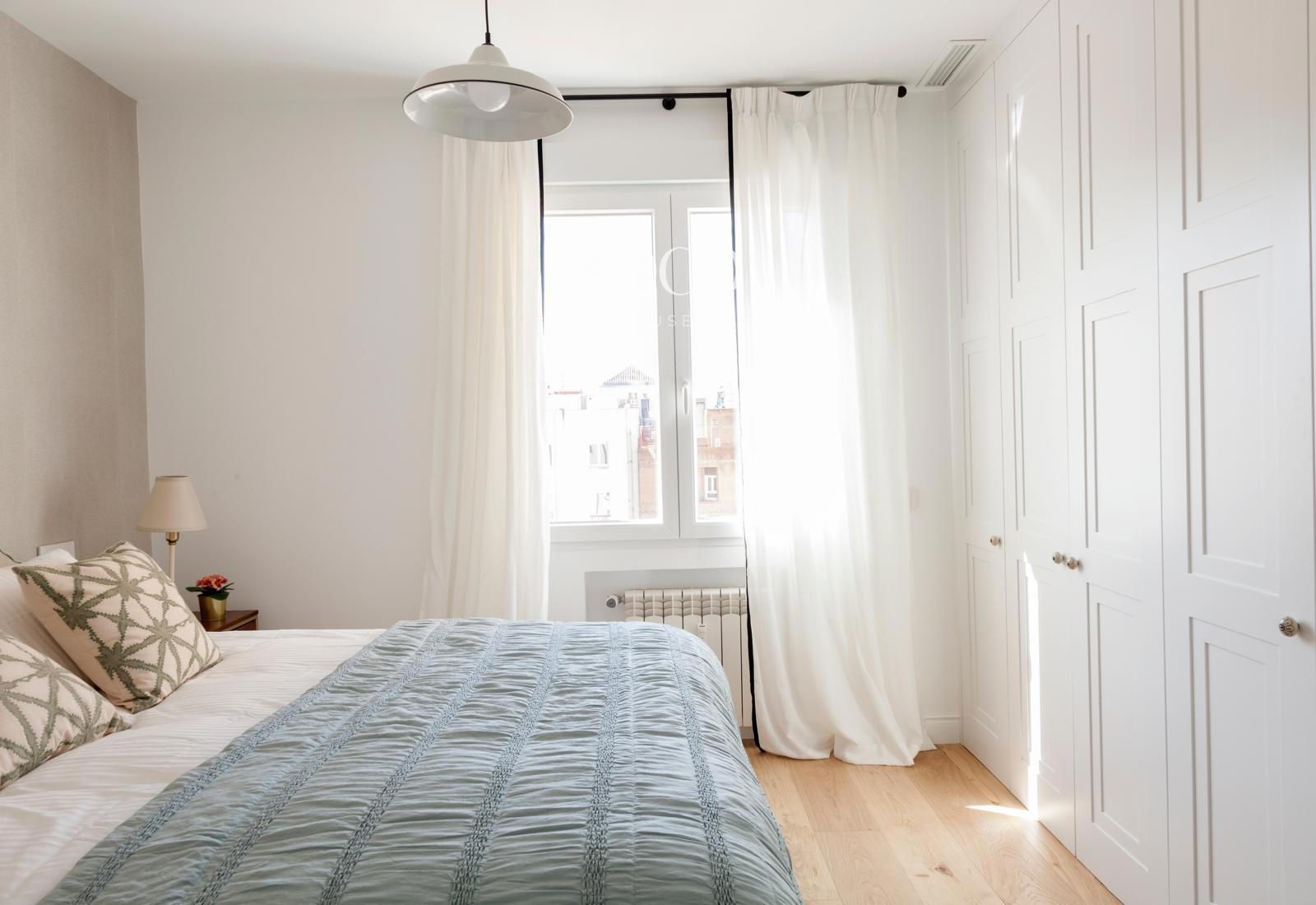 Este piso de 135 m² se sitúa en una sexta planta exterior del barrio de Castellana, en pleno distrito de Salamanca. Gracias a su altura y orientación, la vivienda cuenta con abundante luz natural en todas sus estancias principales.