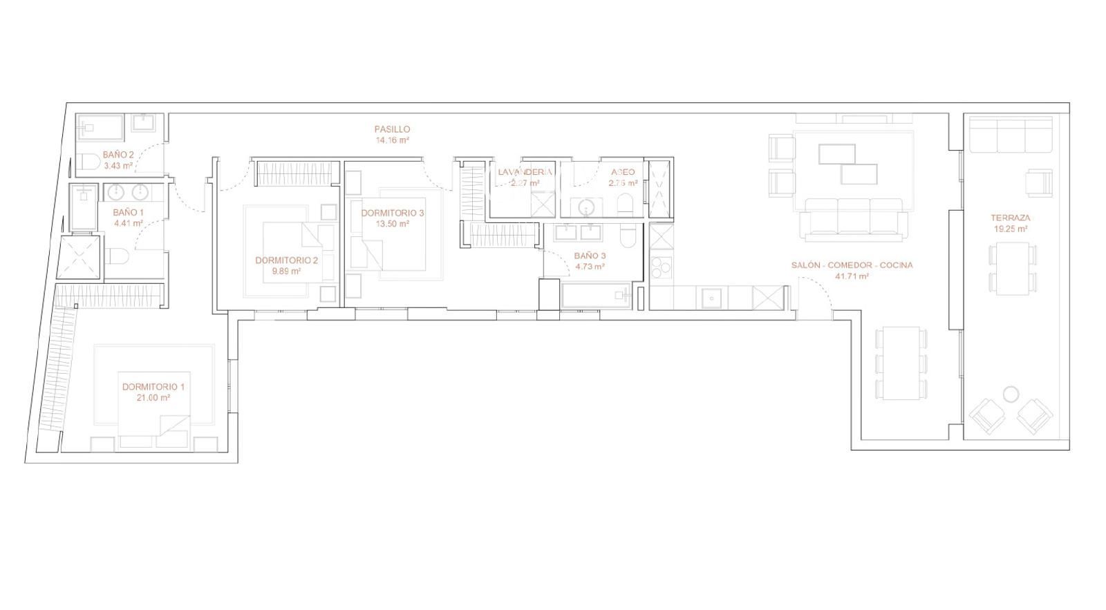 Attique en vente avec 194 m2, 3 chambres et 4 salles de bain, Ascenseur, Meublé et Air conditionné.